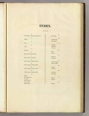 (Index Page to) A New American Atlas Containing Maps Of The Several States of the North American Union, Projected and drawn on a Uniform Scale from Documents found in the public Offices of the United States and State Governments, and other Original and Authentic Information, By Henry S. Tanner ... Philadelphia: Published By H.S. Tanner. 1825. (title page only) Writing Drawn and Engraved by Joseph Perkins. Barralet del. Humphrys sc.