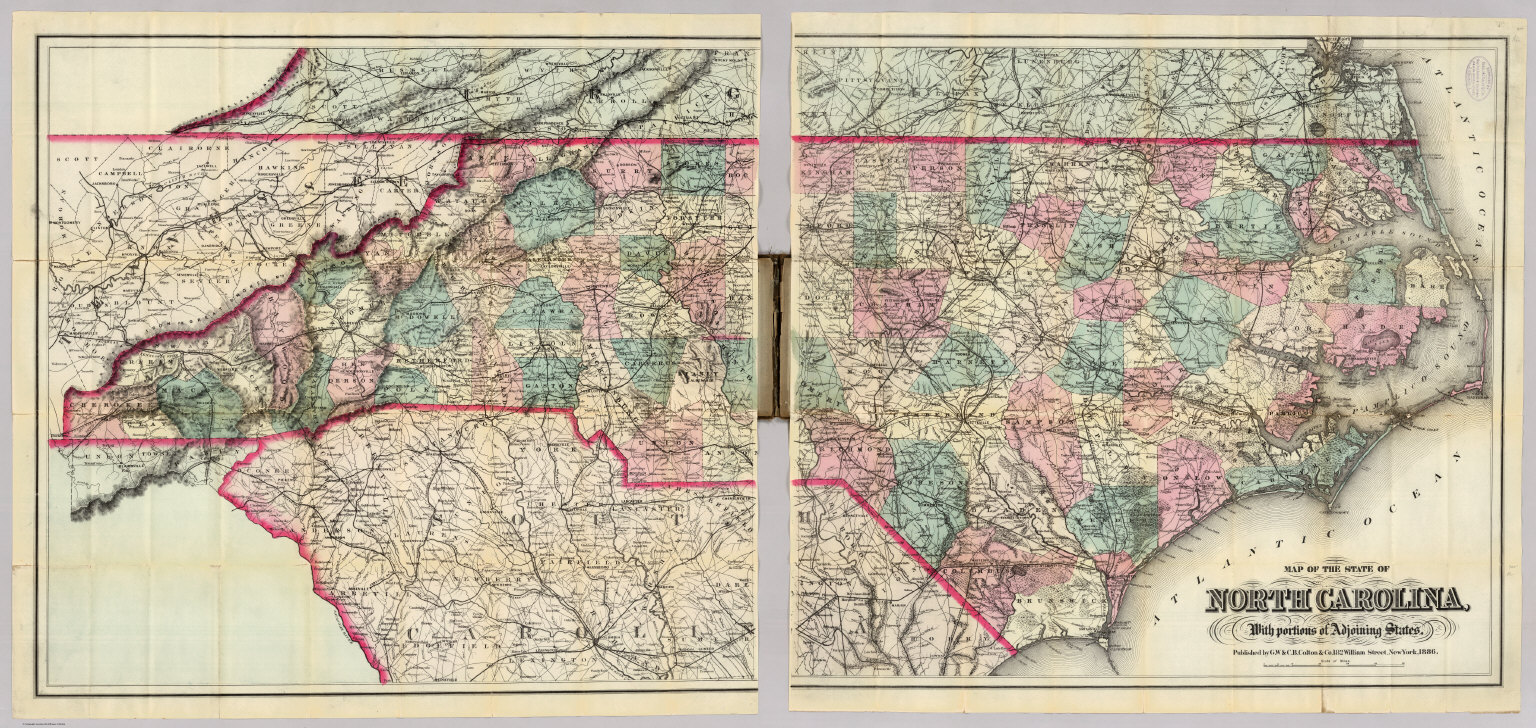 (Composite of) Map Of The State Of North Carolina, With Portions Of Adjoining States. Published by G.W. & C.B. Colton & Co. 182 William Street, New York, 1886.
